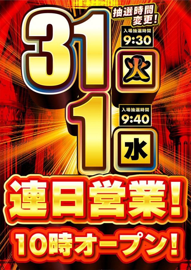 ■9:40抽選開始 ■新台入替当日など▶︎9:30抽選開始 |