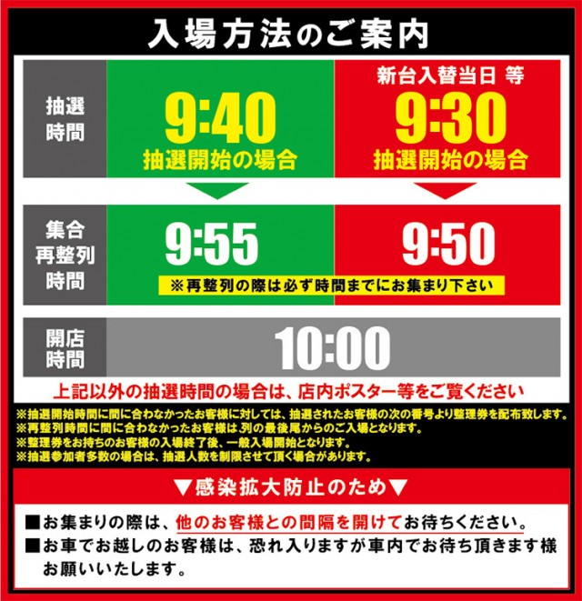 ■9:40抽選開始 ■新台入替当日など▶︎9:30抽選開始 |