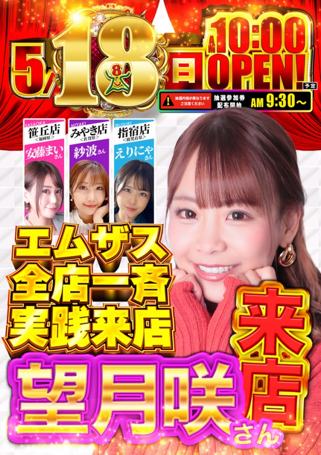 ❤️18【日】エムザス全店一斉実践来店!望月咲さん来店❤️