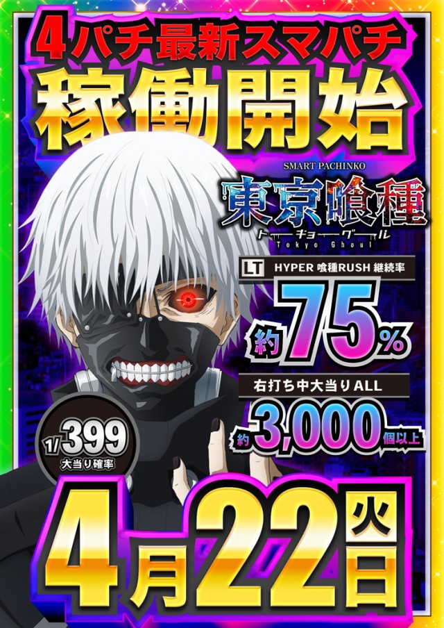本日22日 (火)スマパチ 東京喰種 稼働開始!