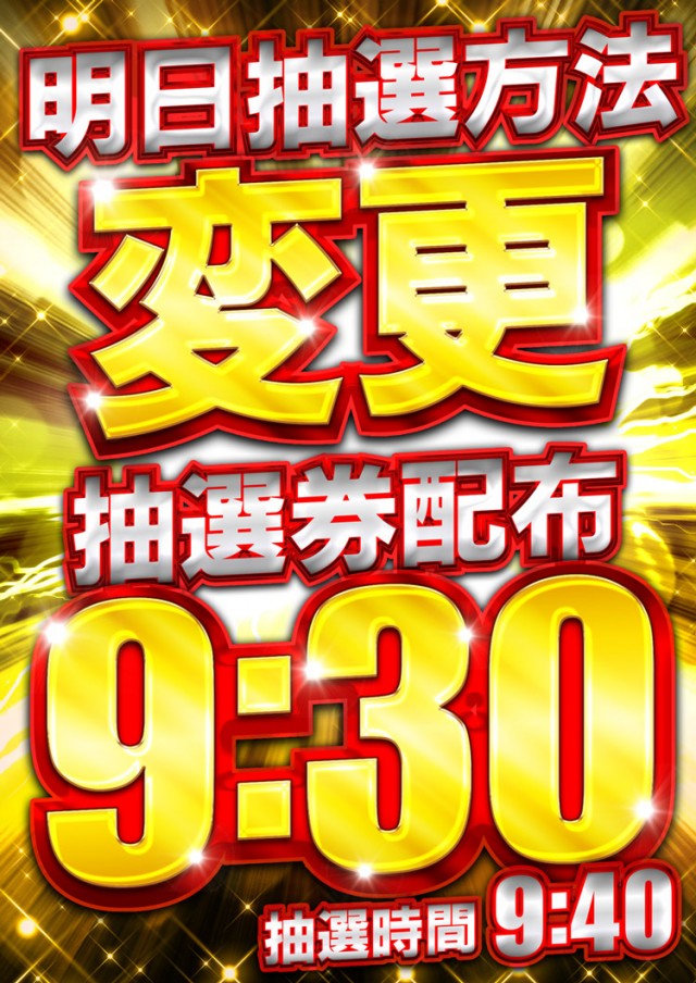 通常時は9:40抽選開始▶︎9:55再整列▶︎10:00入場開始 |