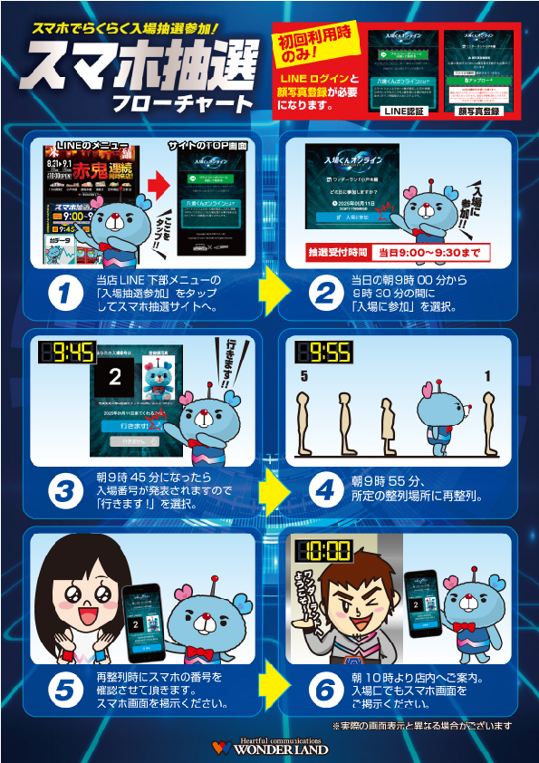 必ず位置情報をON!へ設定をお願い致します。 またスマホ抽選へ不参加及び整列に間に合わなかった場合は一般入場となります。 |