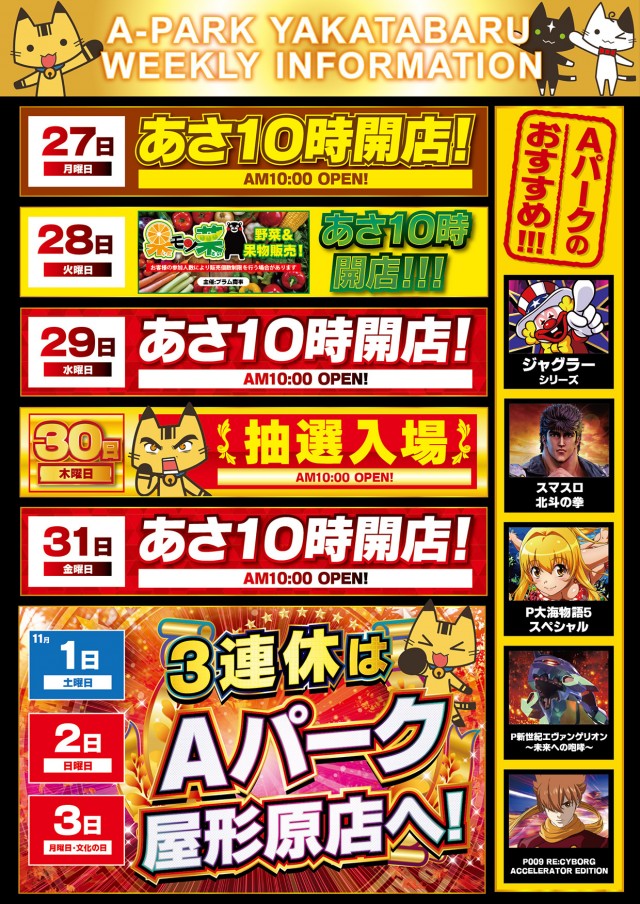 1位 10月10日(金) 2位 10月11日(土) 3位 10月8日(水)