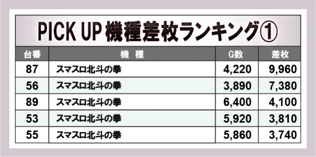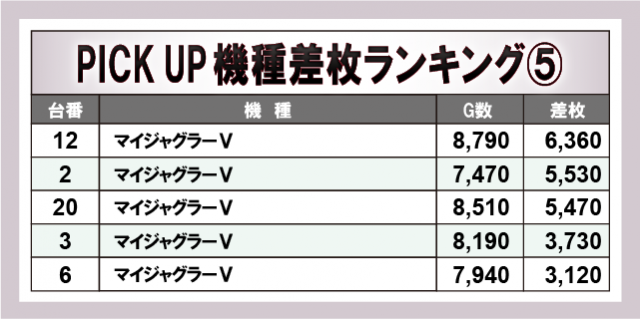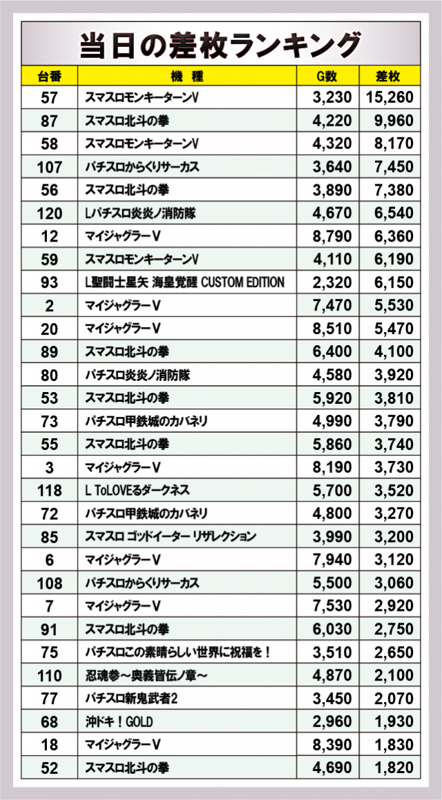 ※差枚数順に掲載しています。