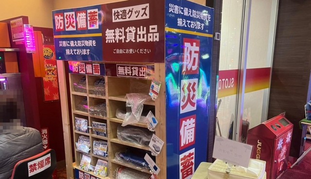 同店には防災備蓄品が完備されいるほか、無料貸し出しグッズも豊富で長時間の遊技や天候不良時も安心して訪れることができそうだ。