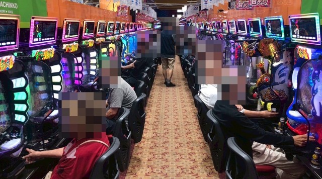 広い通路と台間で解放感が魅力の同店。低貸コーナーやパチンココーナーも大勢のファンで活況となっていたぞ!