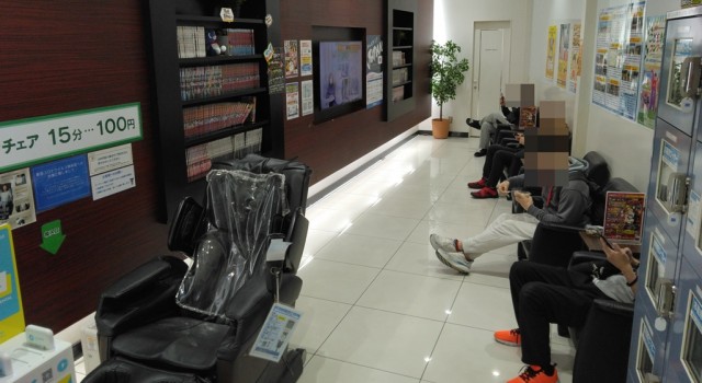 広々とした休憩エリアにはテレビや漫画が充実しており、遊技の合間でも快適にくつろげる空間となっていた。
