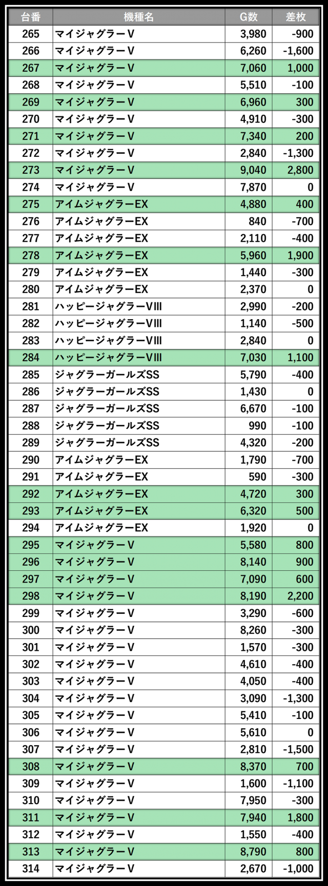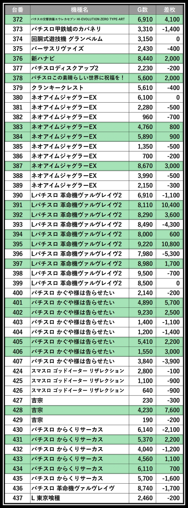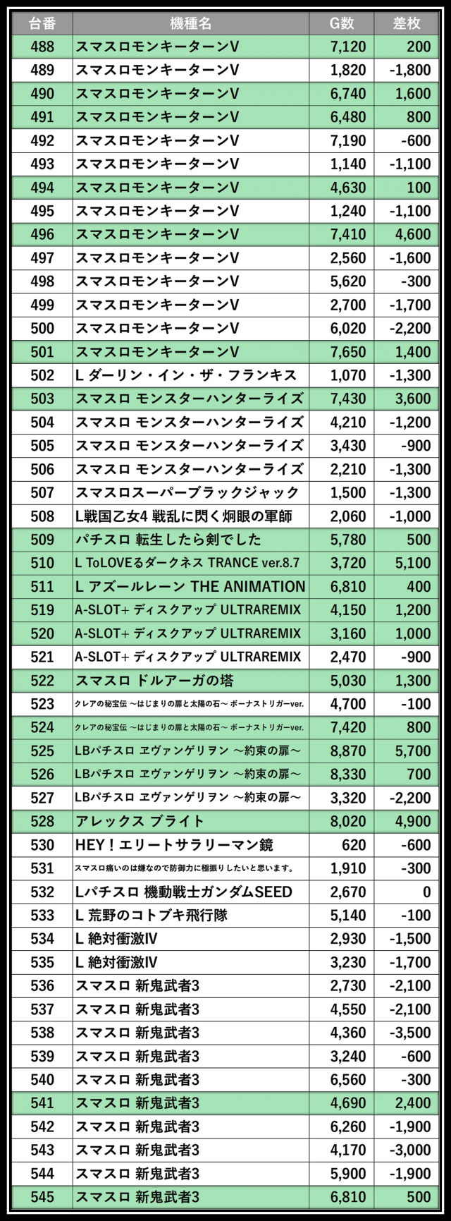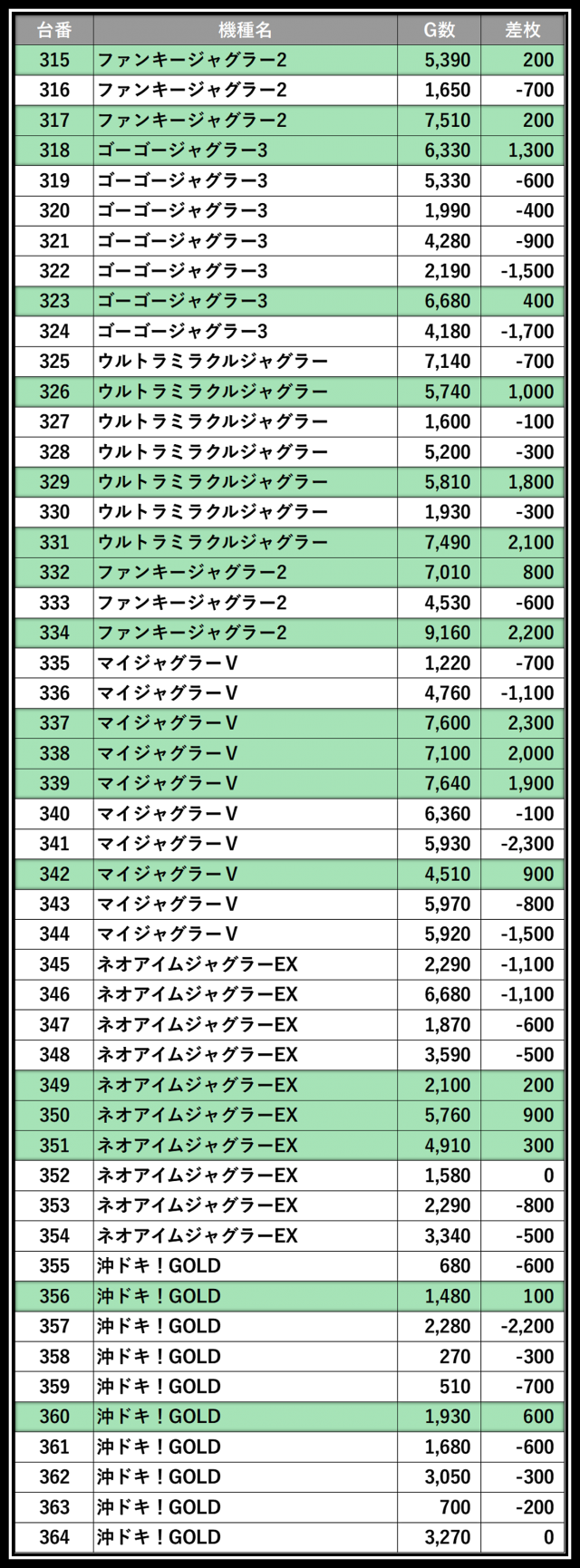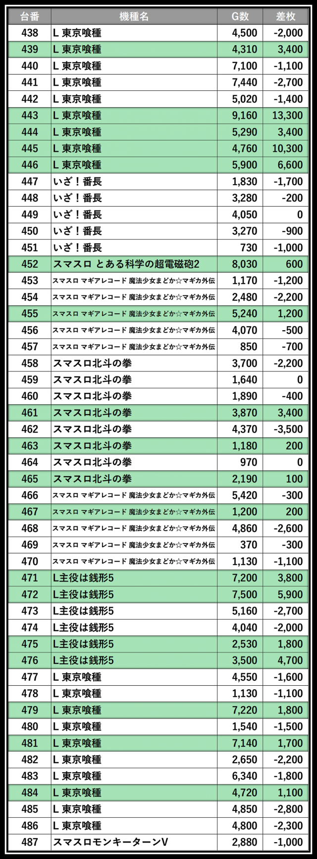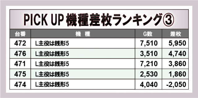 ※差枚数順に掲載しています。