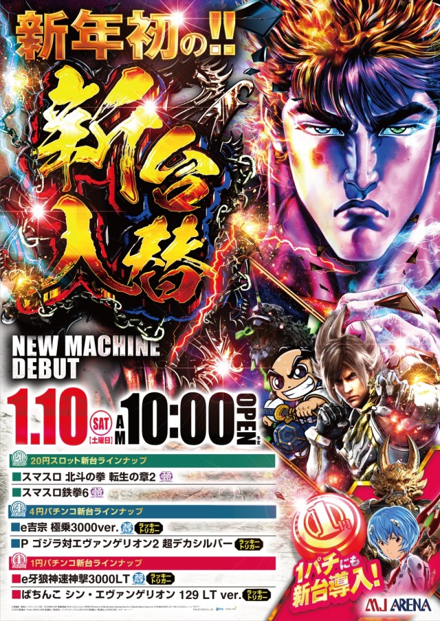 明日1月10日新台入替☆10時開店☆抽選入場です☆