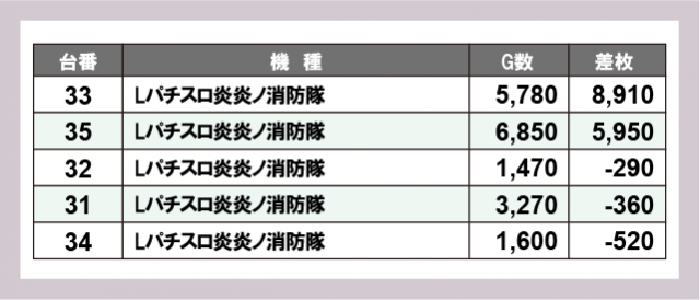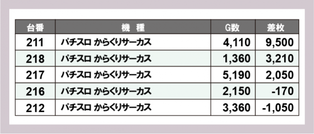 ※差枚数順に掲載しています