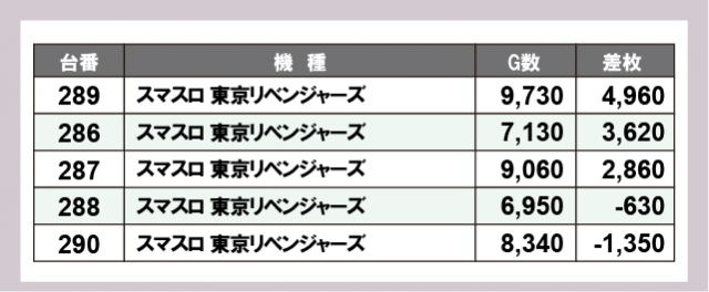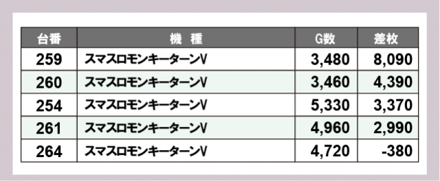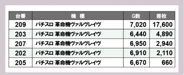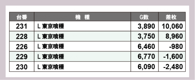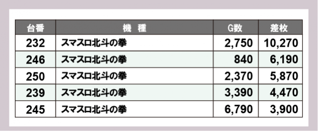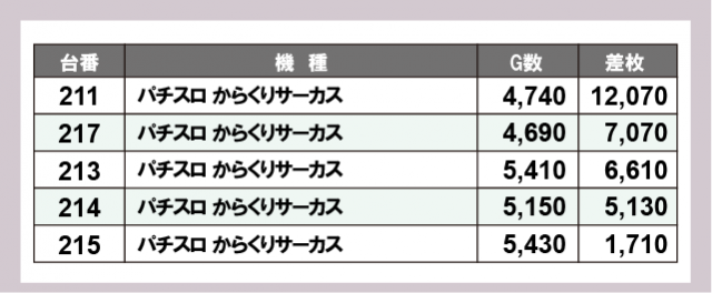 ※差枚数順に掲載しています