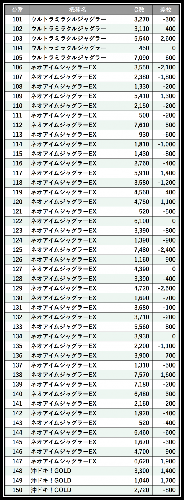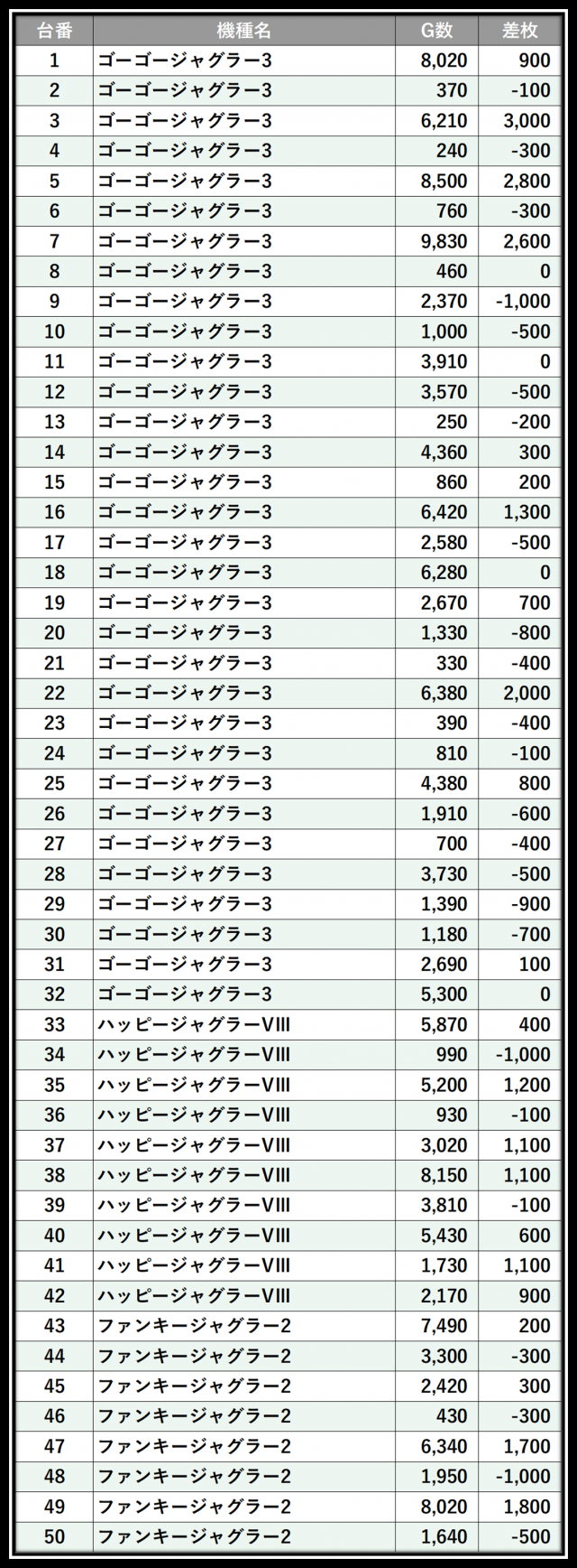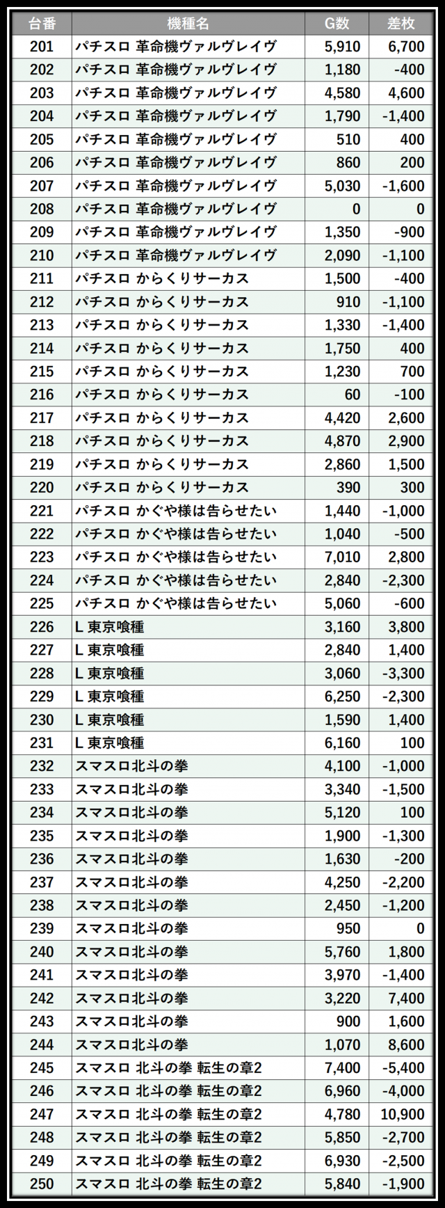 ※差枚数順に掲載しています