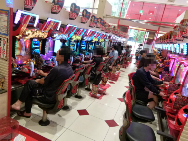 取材時は既に多くのプレイヤーであふれており、パチンコ・パチスロを問わず楽しげな表情でいっぱいだった。