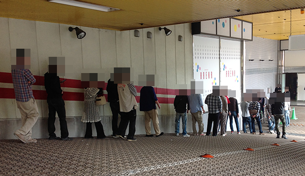 朝はパチンコとパチスロで別々に入場整理券が配布されており、合わせて80人弱が集まっていた。