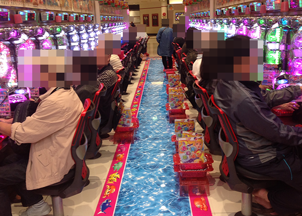 開店直後の4円パチンコでは、海物語シリーズが最も人気。