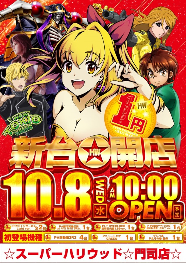 10月24日(金)全館10時開店!! 9時40分抽選開始!!