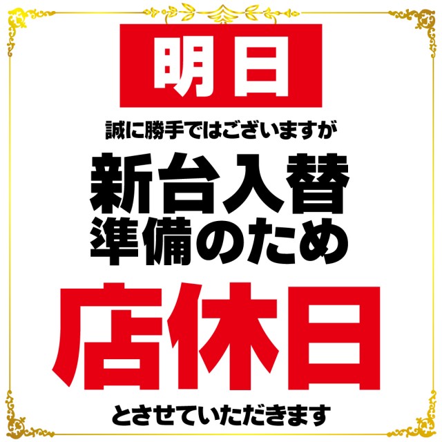 明日新台入替準備の為店休日。