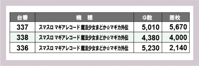 ※差枚数順に掲載しています