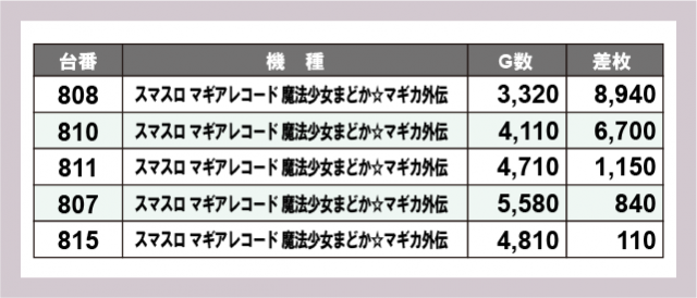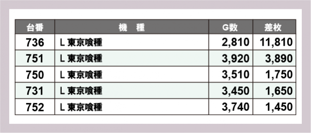 ※差枚数順に掲載しています
