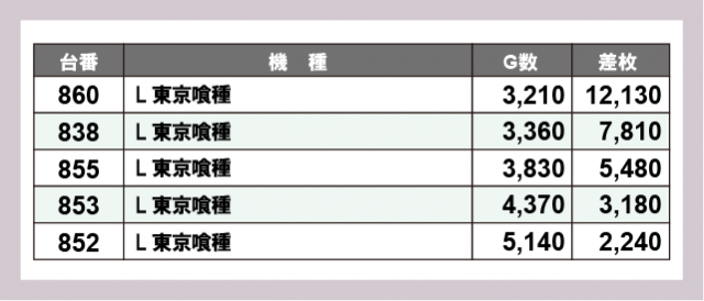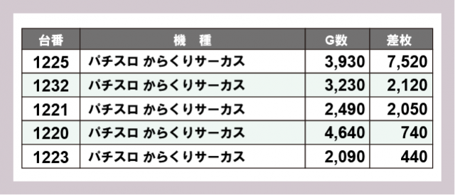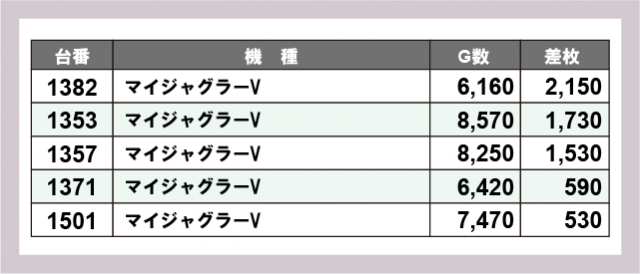 ※差枚数順に掲載しています