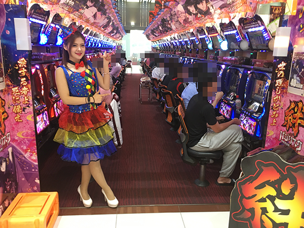 パチスロコーナーをみてみると、「バジリスク~甲賀忍法帖~絆」をはじめ、ジャグラーシリーズや「沖ドキ!」などが盛況。