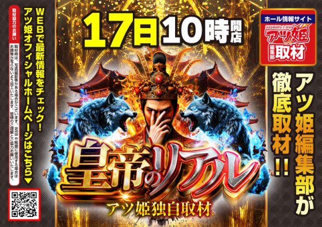 【本日17日】アツ姫独自取材★皇帝のリアル(予定)