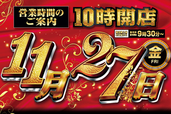 本日27日10時開店!!