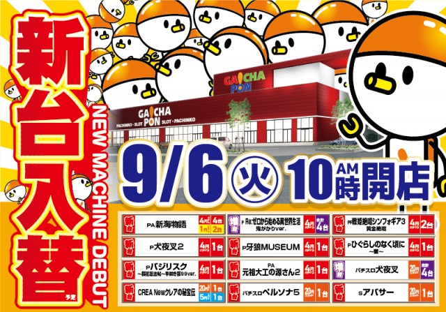 本日です!がちゃぽん新台入替!