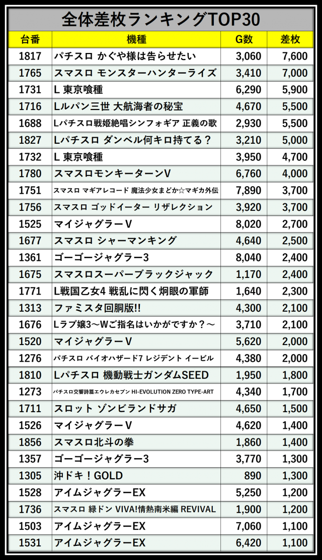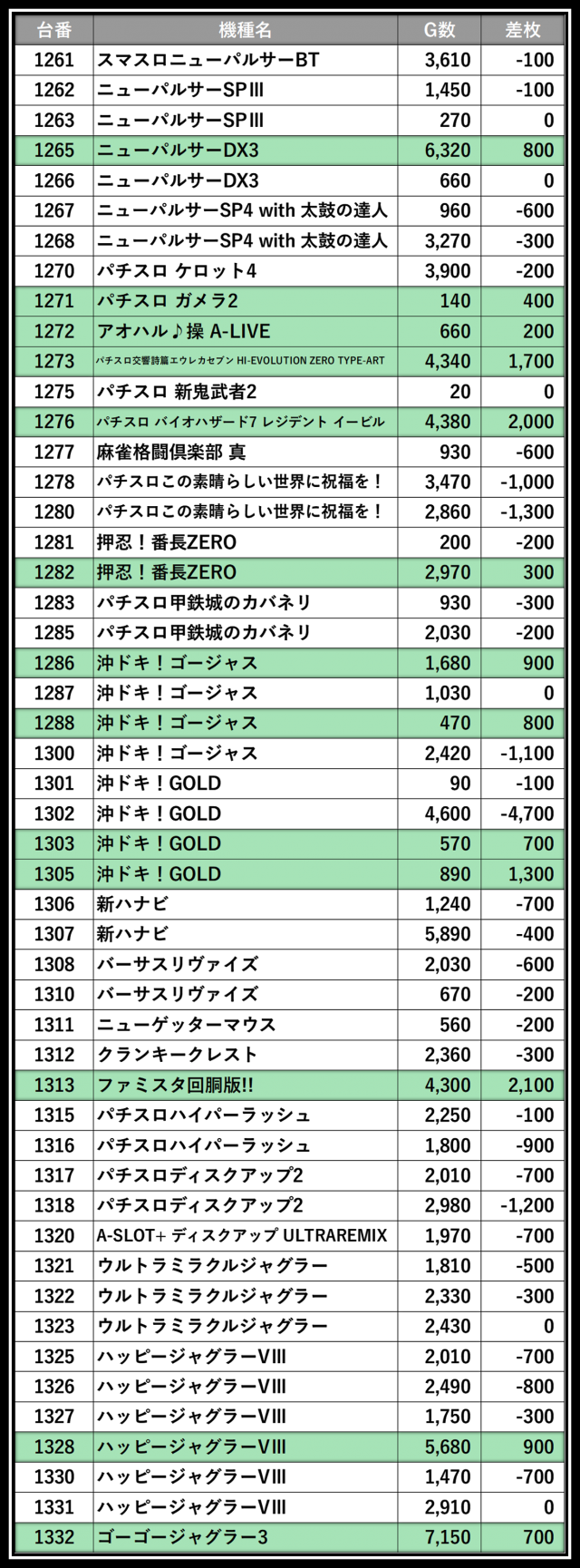 その結果の中から、ぱちタウンが注目すべきポイントを厳選してユーザーにお届け!プレイヤーが楽しんだ一日を下記データにて振り返ってみて欲しい。