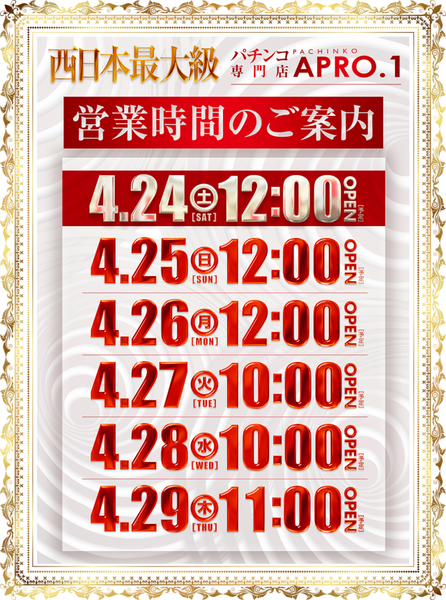 通常:9時45分より並んだお客様で全抽選を行います。※11時OPEN時は10時45分より全抽選。 |