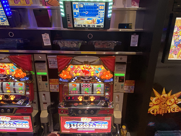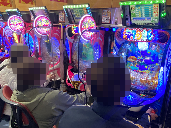 20円パチスロに目を向けると、「ネオアイムジャグラーEX」や「マイジャグラーⅤ」などが微笑ましいムードに包まれており、遊技中に見せるプレイヤーの嬉しそうな表情が印象に残っている。