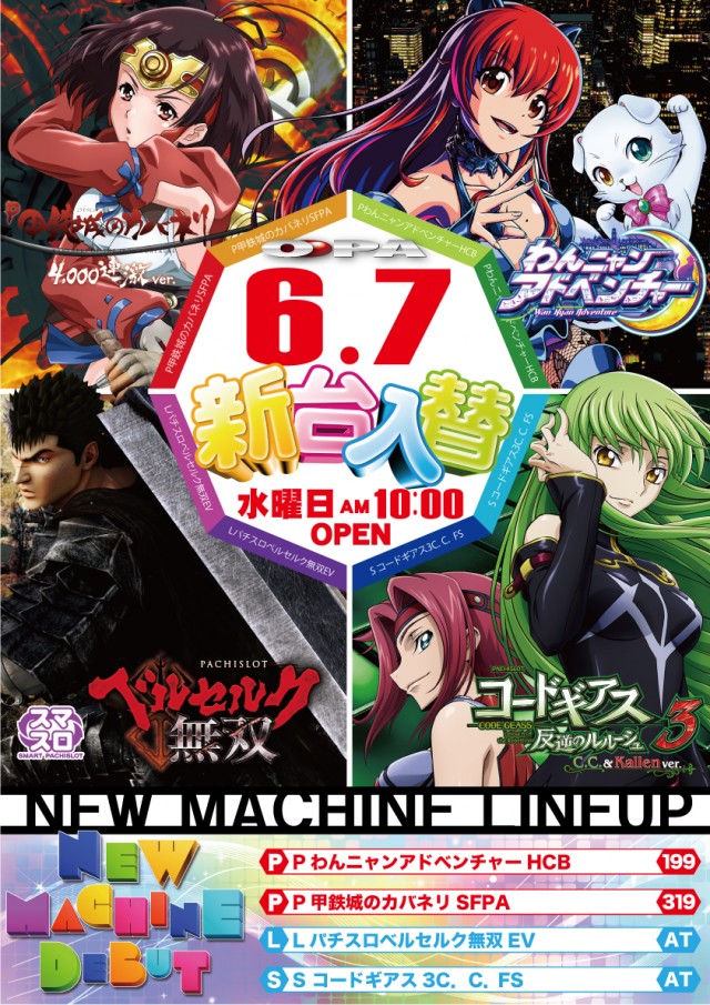 明日6日は店休日💤明後日7日水曜日は新台入替朝10時OPEN