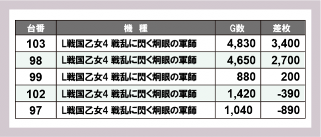 ※差枚数順に掲載しています