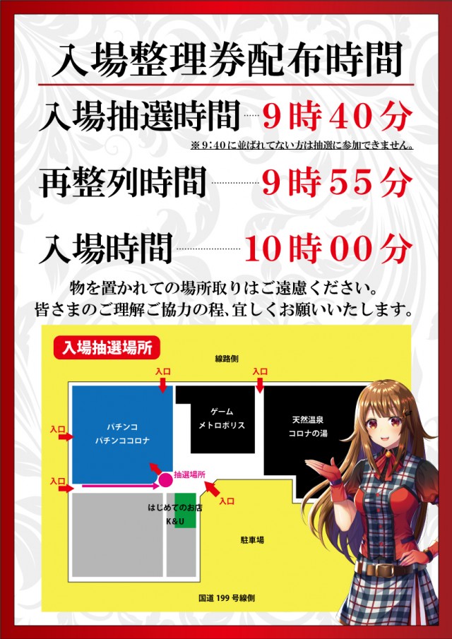 9時40分抽選開始(9:40に並ばれていない方は抽選に参加できません。) |