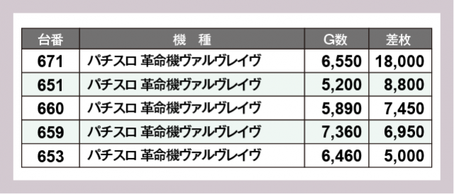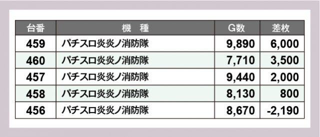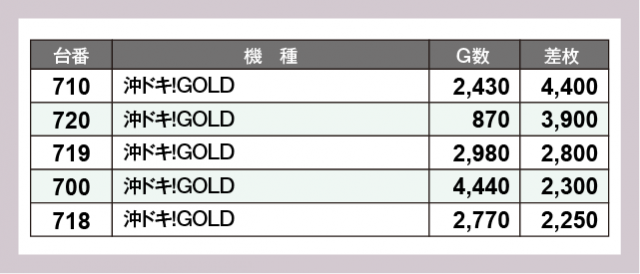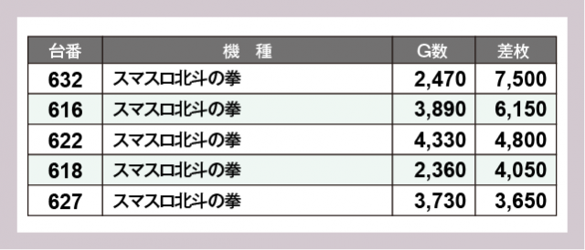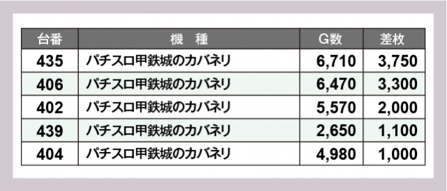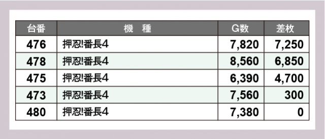 ※差枚数順に掲載しています