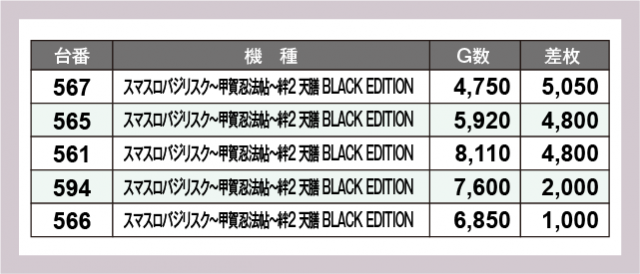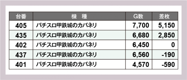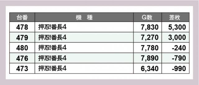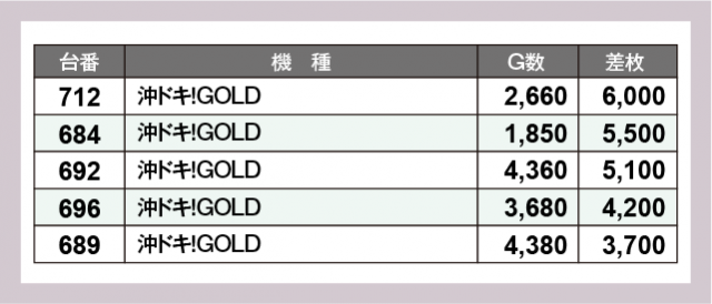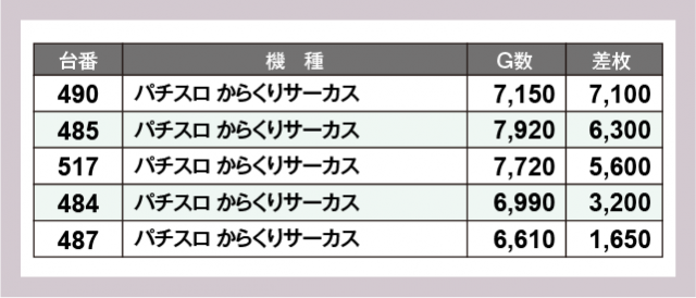※差枚数順に掲載しています