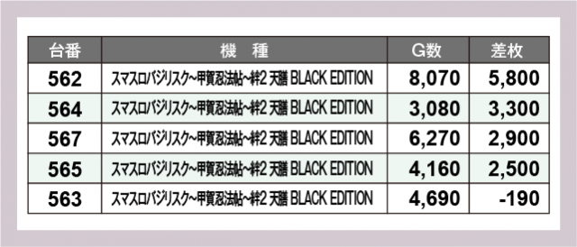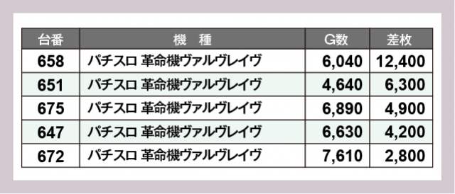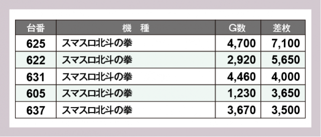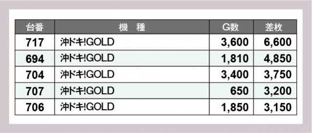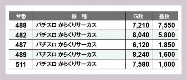 ※差枚数順に掲載しています