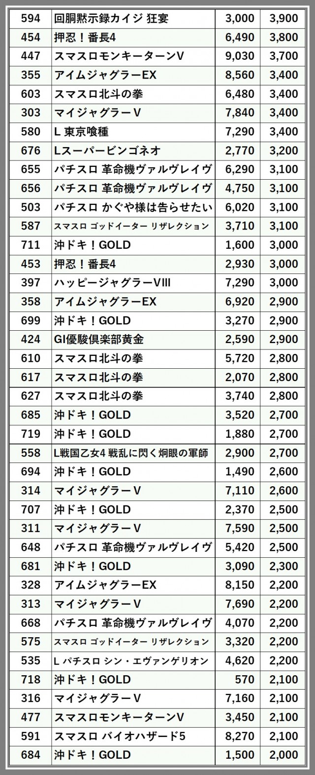 厳選された取材対象機種をはじめ、その他スロット全体から好記録が飛び出した!プレイヤーが楽しんだ1日を下記データにて振り返ってみて欲しい。