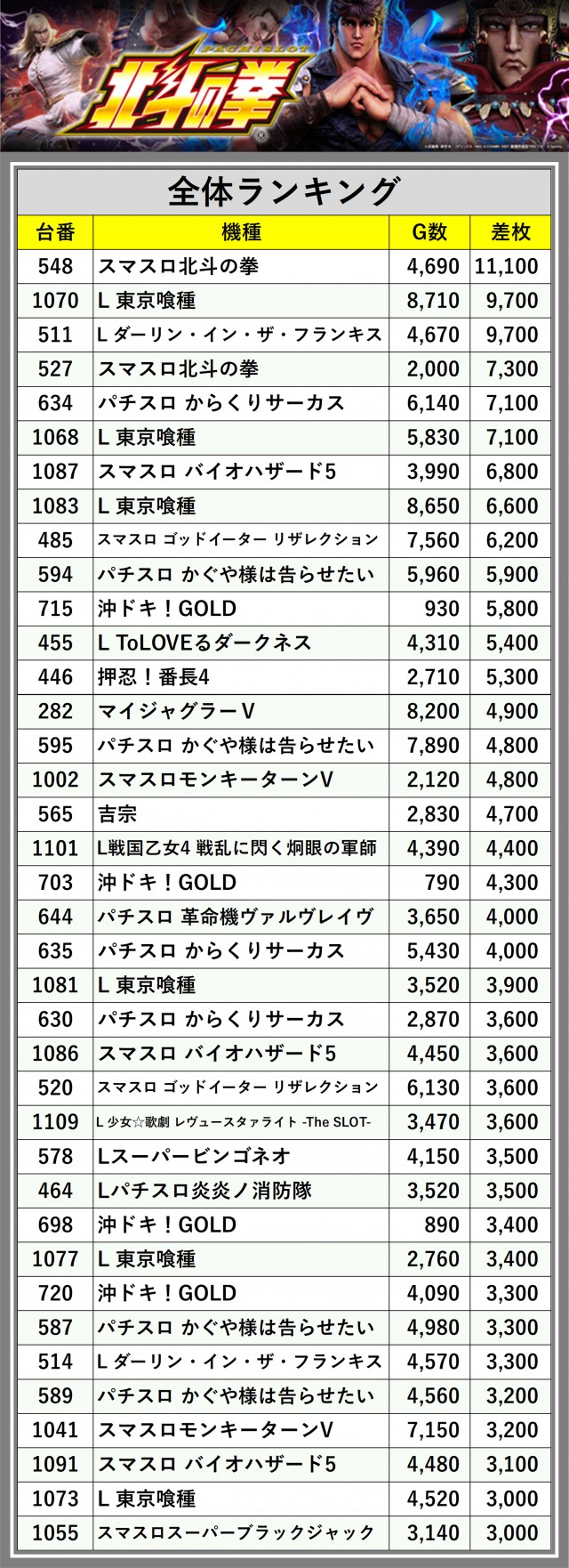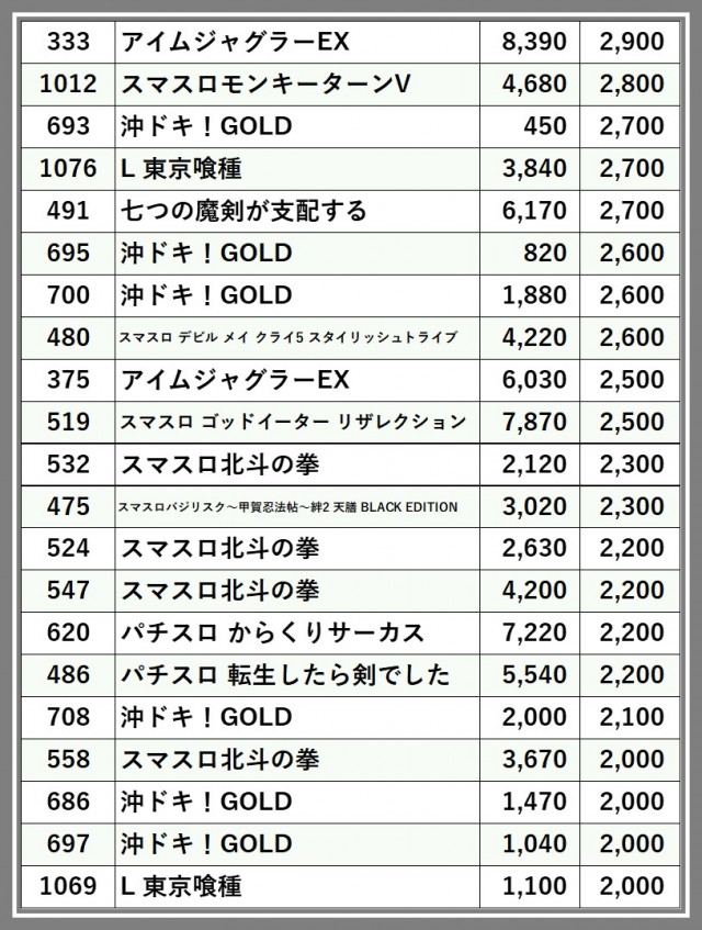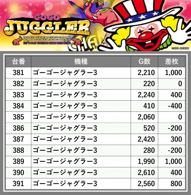 厳選された取材対象機種をはじめ、その他スロット全体から好記録が飛び出した!プレイヤーが楽しんだ1日を下記データにて振り返ってみて欲しい。