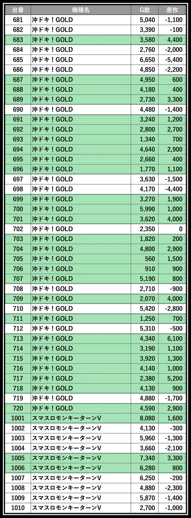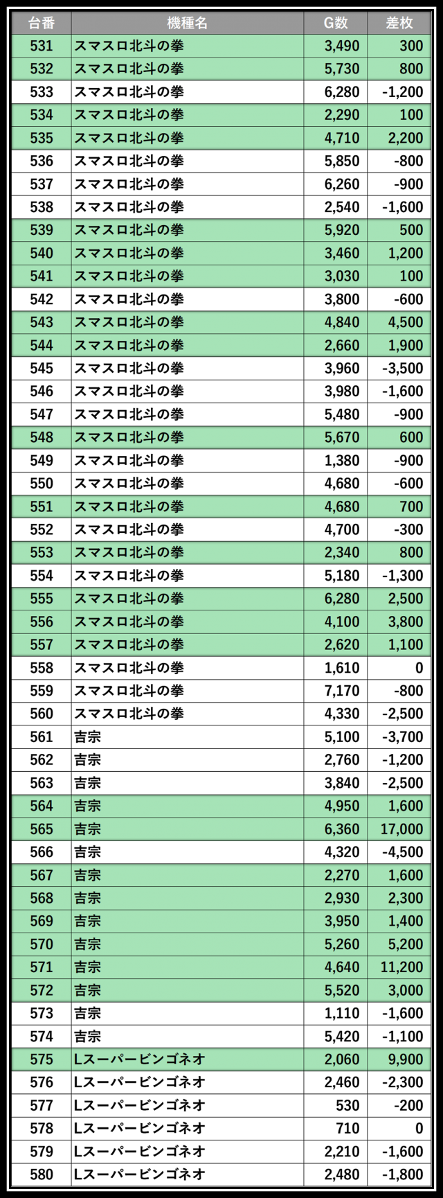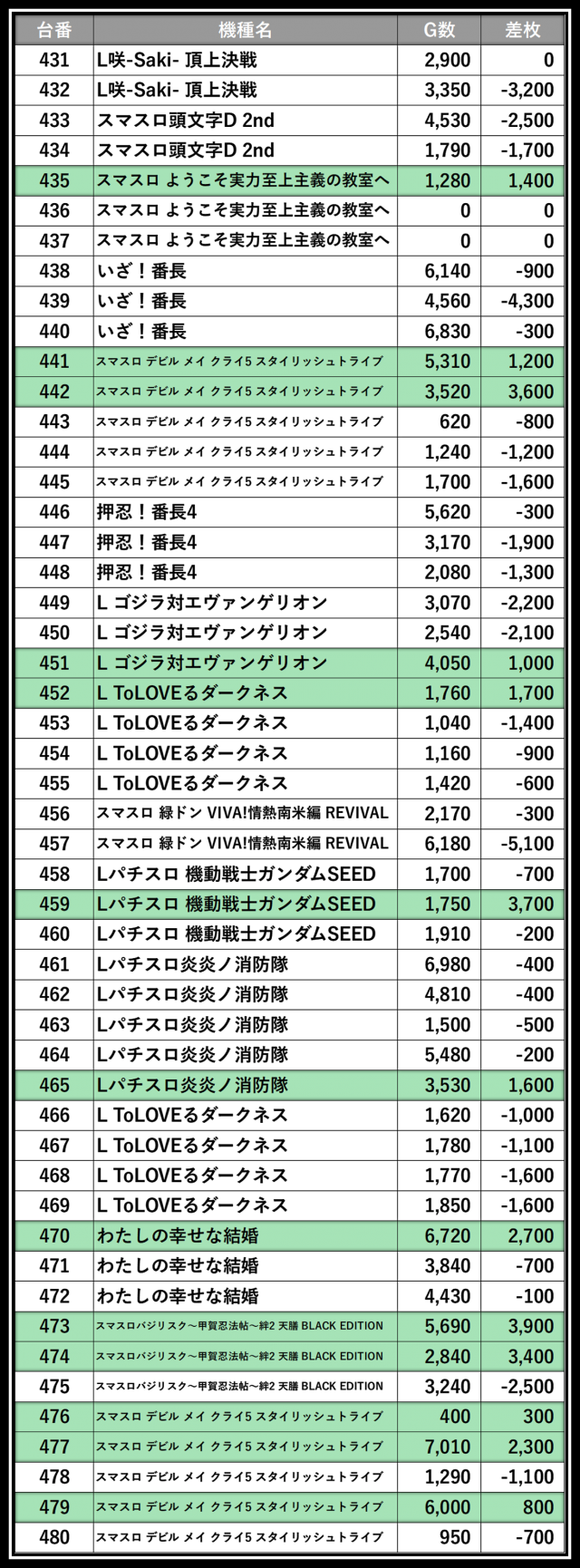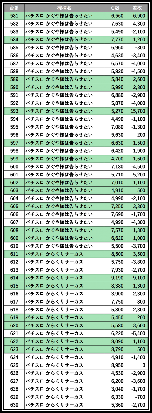 ※差枚数順に掲載しています