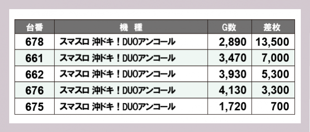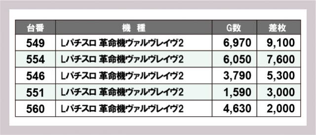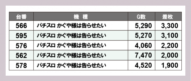 ※差枚数順に掲載しています