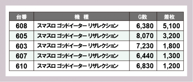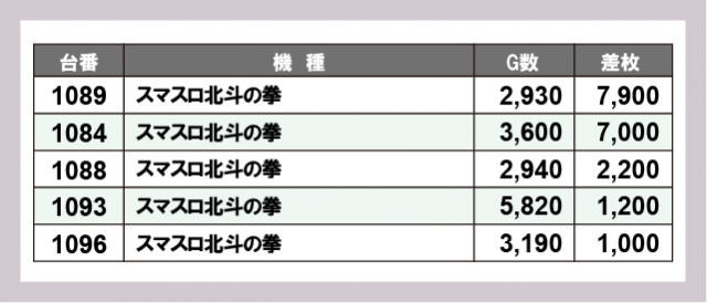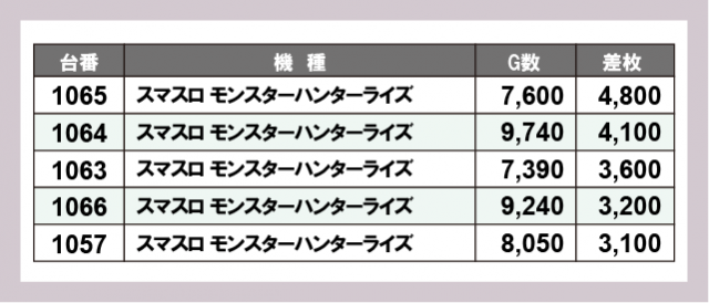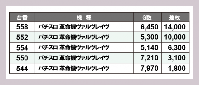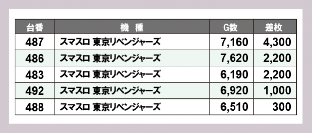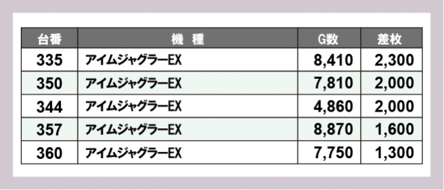※差枚数順に掲載しています