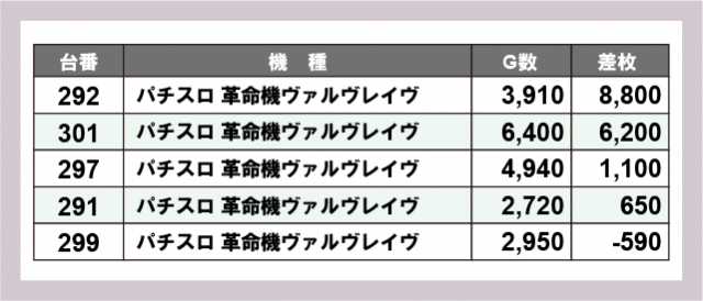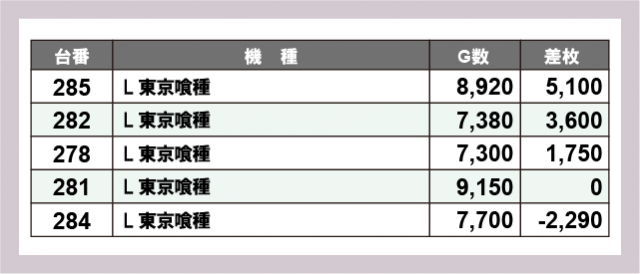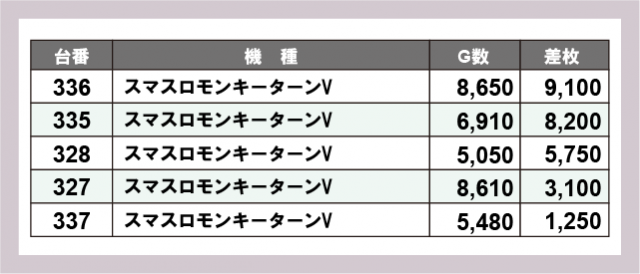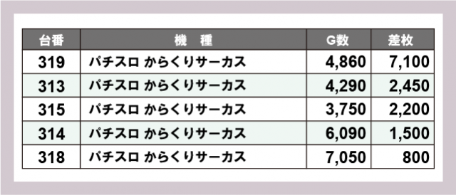 ※差枚数順に掲載しています