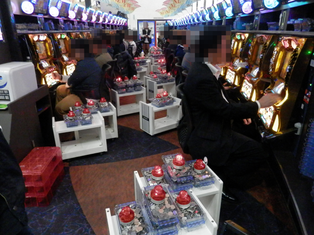 人気機種のシマには、立ち見をしながら空き台が出るのを待っているプレイヤーの姿もあった。