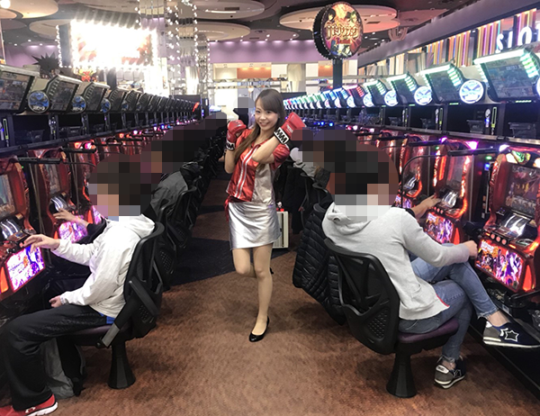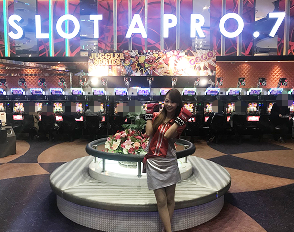 専門店ならではといった機種のラインナップも魅力的な「APRO.7」。咲ちゃんのようなキュートな女性でも通いやすいと思えるほどに、オシャレで清潔感のあるホールでした☆