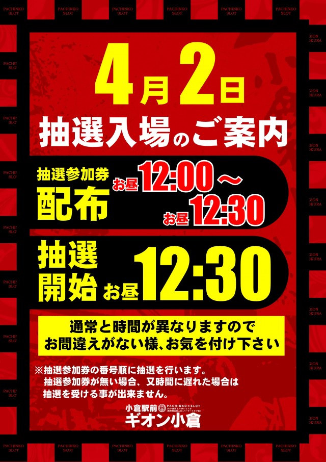 GION小倉 明日10日 ★新台入替★ 抽選は9:30~
