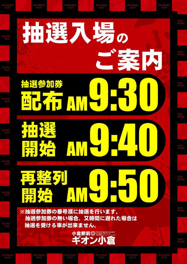 GION小倉 本日 ★土曜日★ 抽選は9:30~