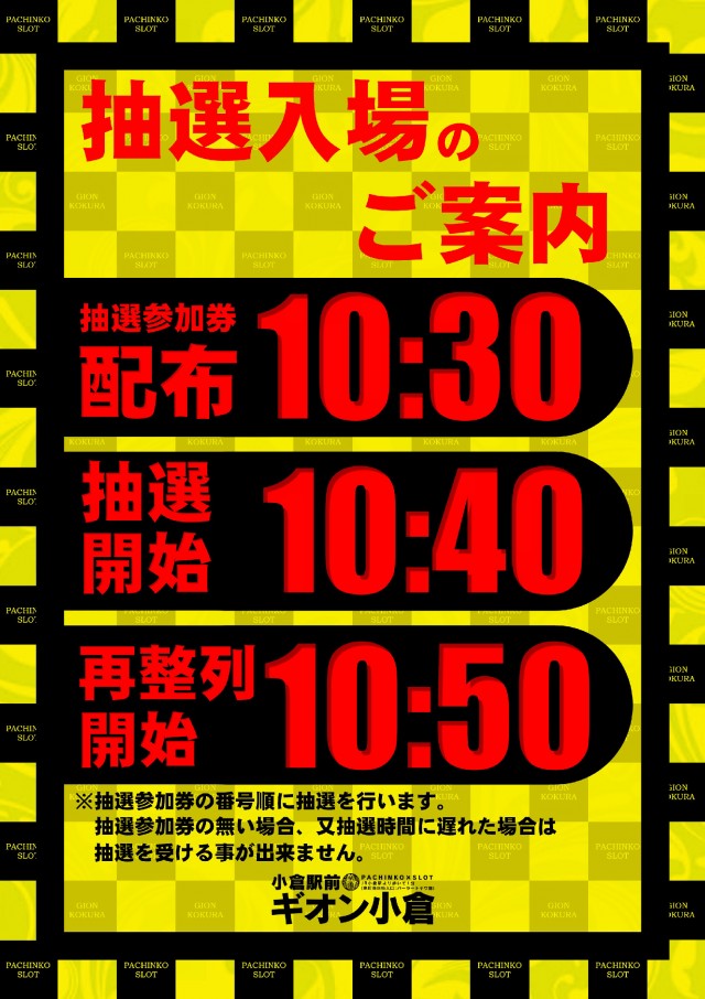 GION小倉 明日18日 ★新台入替★ 抽選は9:30~