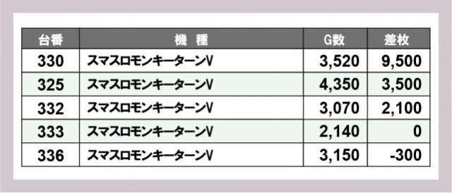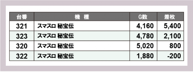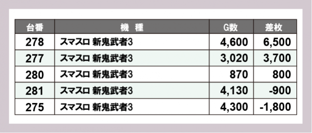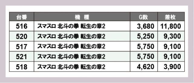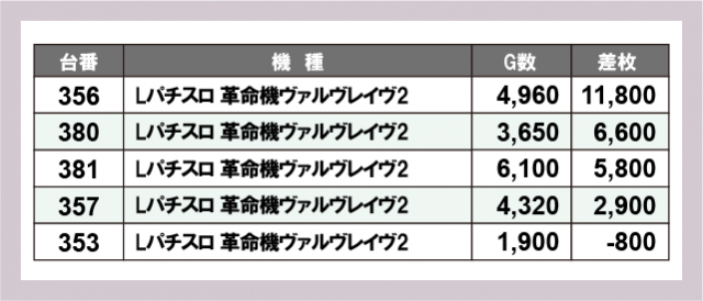 ※差枚数順に掲載しています