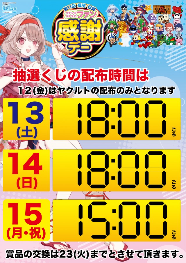 12(金)13(土)14(日)15(月)ファン感謝デー開催!
